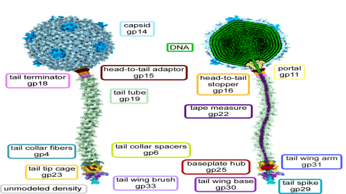 The most abundant biological entities on Earth are bacteriophages, viruses that infect bacteria. Around the world, these natural predators are being deployed alongside antibiotics to fight dangerous drug-resistant superbugs. From a physics perspective, phages can be viewed as biological nanoparticles with conserved structural elements: generally, a genome that is packaged into a protein shell called a capsid, which connects to tail machinery via a molecular motor known as the portal. These structural elements determine important factors like phage stability, bacterial host-range, particle immunogenicity, and more. Since bacteriophages are increasingly used as antimicrobial therapies, it is more important than ever to understand these structural determinants of phage function.
