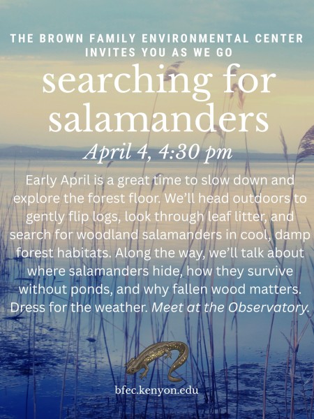 Early April is a great time to slow down and explore the forest floor. We’ll head outdoors to gently flip logs, look through leaf litter, and search for woodland salamanders in cool, damp forest habitats. Along the way, we’ll talk about where salamanders hide, how they survive without ponds, and why fallen wood matters. Dress for the weather. Meet at the Observatory.