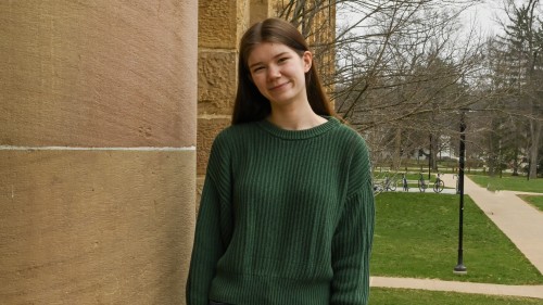 Kate Faxon '26 is an English major with a minor in music from Cleveland Heights, Ohio. She has studied voice with Jennifer Marcellana and Rhonda Rom. Additionally, Kate sings in the Kenyon College Chamber Singers and music directs The Broken Legs and Colla Voce. She has also performed with the Kenyon College Dance, Drama & Cinema Club and the Opera and Music Theater workshop.