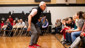 Tressel was in town Thursday to promote the state’s 90-day fitness challenge for students in grades 4-8. In the process, he commended a unique partnership in which Kenyon athletes help the kids with the challenge every week, working on everything from sport-specific skills to improved focus to — during the assembly, at least — balance.