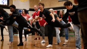 Beginning in September, members of seven Kenyon teams have taken turns every Wednesday leading workouts, drills and games with dozens of students at Wiggin Street for 20 minutes before classes start. So far, athletes have come from men’s and women’s soccer, women’s basketball, men’s and women’s lacrosse, women’s tennis and men’s golf. Members of the football team participated in last week’s assembly as well.