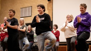 Kenyon student-athletes know a thing or two about maintaining balance in their lives, but during a recent assembly at Wiggin Street Elementary in Gambier, things got pretty literal.
