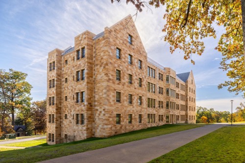Located on the south end of campus near Old Kenyon Residence Hall, Thomas Hall’s brand-new apartments are configured primarily for groups of four students, living in either two double rooms or one double room and two single rooms. A handful of apartments house six students in two double rooms and two single rooms.